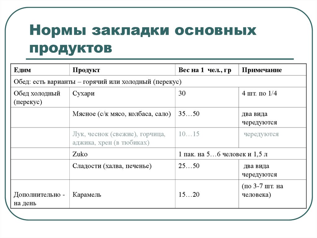 | Питание в походе | Энергетическая ценность | Рацион туриста |
